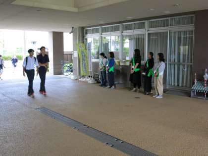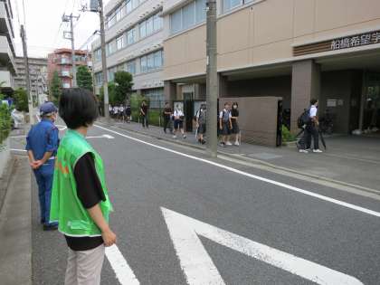 今朝も保護者、地域の方、そして先生に見守られながら登校するフナキボ生です。【菅野】