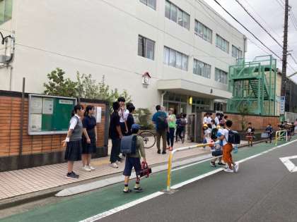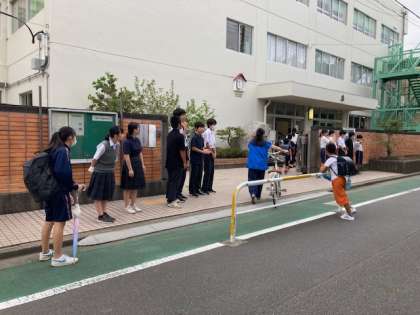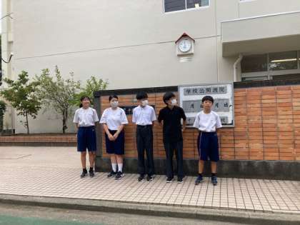 学舎あいさつ三日目は千歳台小学校での様子です。本校からも13名の生活委員が参加しました。和やかに児童の登校を見守りました。(前田)