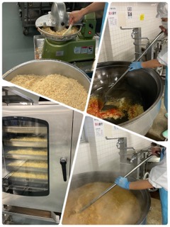 ジャージャー麺は、みじん切りにした大豆が入っています。豆板醤を炒めてピリッとして辛さと香りを出しています。スタミナスープで力をつけて、疲れを吹き飛ばしましょう!!