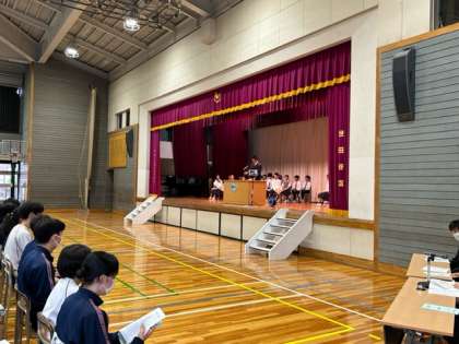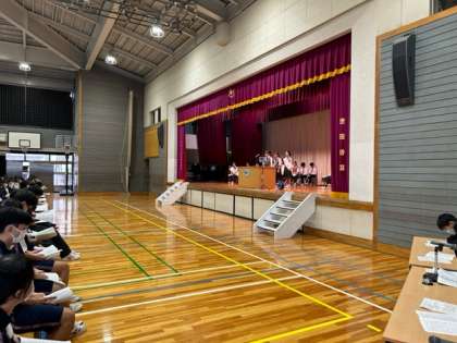 生徒会役員選挙では一年生も壇上からスピーチを頑張っていました。野球部員も応援演説者として活躍していました!