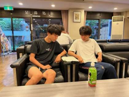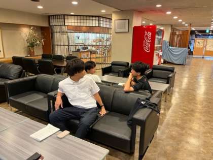 今朝の起床放送のための打ち合わせ、リハーサルしてます。