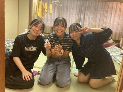 夕食までの待機中、部屋ではお土産の見せ合いをしてました これ仏像のガチャガチャなんですー♪と嬉しそうに見せてくれる可愛らしい女子たちです 水巻