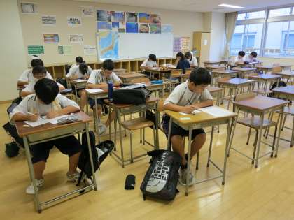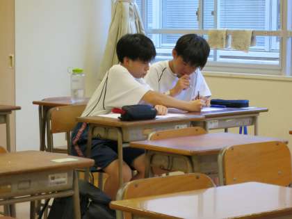 今週の木、金は中間考査。ということでフナキボではまなBASE主催の無料自習室がオープンしています。今日アクティブルームに行くとチューターの大学生が作成した予想問題を解いているところでした。ここから試験に出題されたら来たかいがありますね。みんながんばれ!【菅野】