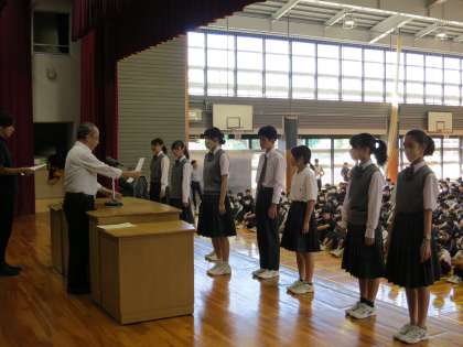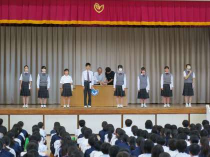 新しい生徒会役員の認証式を行いました。あらたな生徒会執行部が正式にスタートします。