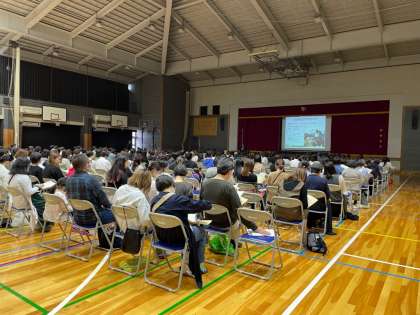 体育館で新入生保護者説明会を行いました。(片山)