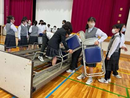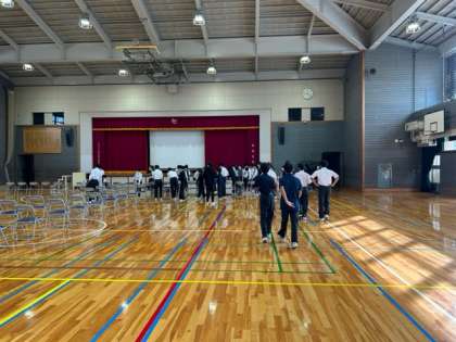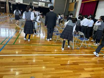 椅子並べは1年生4,5組が担当しました。みんなよく働いたので300脚が8分で並びました!