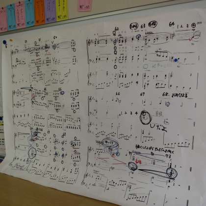 特に最後の合唱コンクールとなる12期生の思いはひとしおでしょう。楽譜にも書き込みがたくさんありました【菅野】