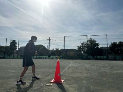 一年生の体育ではソフトボールが行われていました。この練習道具は体育科の先生の手伝りだそうです。ナイスアイデアです。野球部でも取り入れようと思いました。