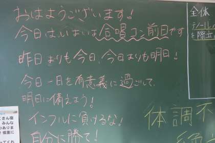 歌う生徒ばかりではなく実行委員やパートリーダー,指揮者,伴奏者にとってもあと1日ですね【菅野】