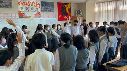 今日は本番前最後の練習でした。円陣を組んだら、各クラス気合いが入っています。