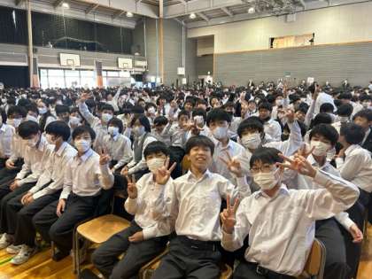 本番直前の一年生は笑顔でした。思い切り頑張って!