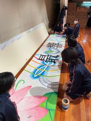 昨日の学芸発表会本番の舞台を華やかにしてくれた美術部によるスローガン。毎年楽しみにしてくださる先生もいます。看板を見た生徒たちからおお〜、という歓声が上がったり、こんなに繊細な優しい看板は初めてです、とお褒めの言葉を頂いたりしました。