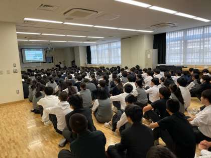 都立学校の選考について、学年全体に説明会を行っています。