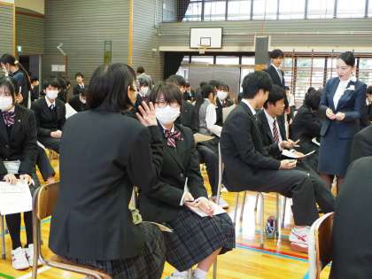 まずはマナーの基本からペアで学びあいます。笑顔が出ているかな【菅野】