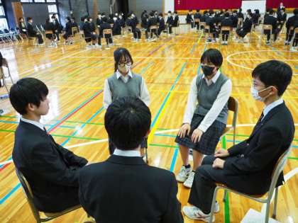 後半は集団討論対策で4〜5人に分かれて練習です。【菅野】