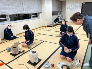 週一回の茶道部。月曜日の活動がずっと出来ずに、約1か月ぶりの部活でした。そして、2年生に代替わりして、新たな部長、副部長になりました。気持ちも新たに頑張っていきましょう。(大橋)