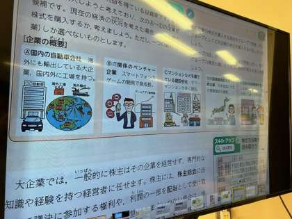 三年公民経済的分野では株投資を体験しました。「自動車会社に投資します。僕は車が好きなので損をしても後悔しません。」という言葉が印象的でした。