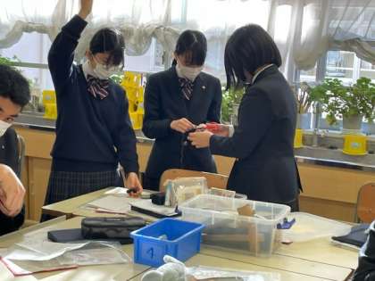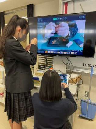 家庭科の裁縫とは違う針と糸のセット方法に悪戦苦闘。動画、手描きプリントを見ながらの人もいれば、友達に聞きながらの人も。教え合いが自然と広がっています。目の前で一緒にやってみるのが一番分かりやすくてスムーズですね。縫い始めるとみんな黙々と縫い進めています。今月完成できそうで楽しみです!(岩崎)[image0.jpeg][image1.jpeg][image2.jpeg]