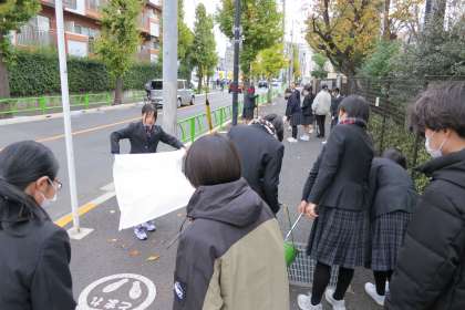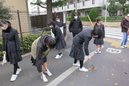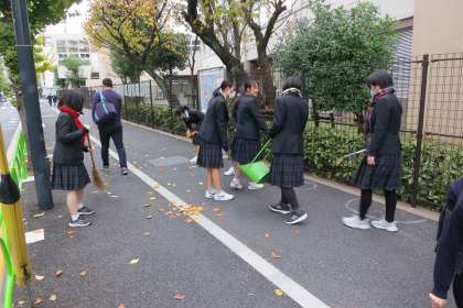 3年生が毎年参加している落ち葉掃きボランティアです。【菅野】