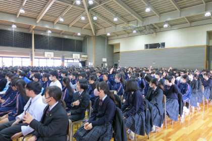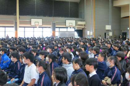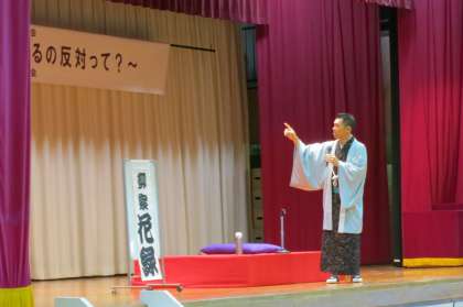 中学生研修会の後半は「花緑的なものの見方 がんばるの反対って?」というタイトルでの柳家花緑さんによる講演会でした。真剣に聞いているフナキボ生です。【菅野】