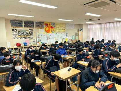 中学校生研修会のアンケートをタブレットで回答しました。タブレットの導入でアンケートの時間が随分省略できるようになりました。