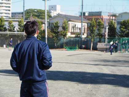 12月初旬にしては暖かな校庭でやっているソフトボールは気持ちよいです。【菅野】