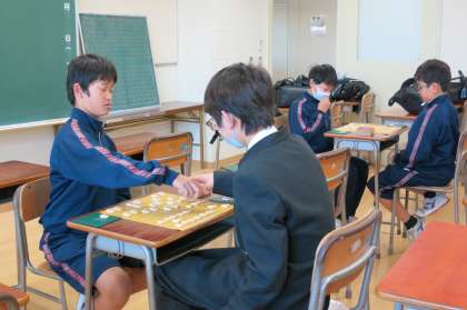 委員会の撮影で校舎を回っていると、将棋部の活動に出会いました。もしかして、将棋部は今年初取材?ですかね【菅野】