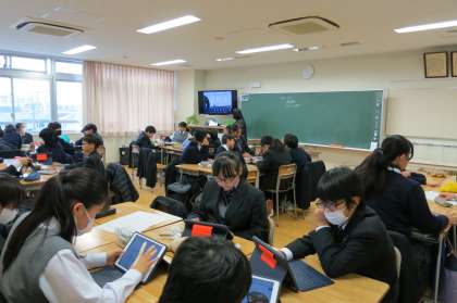 代表者が抽選会に参加している時、教室では2月2日の校外学習の事前調べをしつつ配信されている抽選会の画像を見ています。この時も教室では興奮することなく、慌てず騒がず抽選会に気をつかいつつ、事前学習にもちゃんと取り組んでいる。やっぱりここがフナキボ生なんですよね。【菅野】
