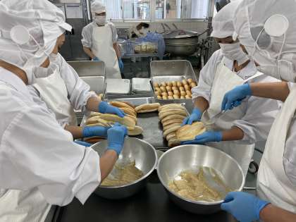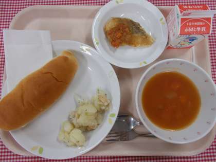 魚のラビゴットソースは、ほどよく酸味があり、魚が苦手な人にも食べやすい仕上がりになりました。どのクラスもとてもよく食べてくれました!!