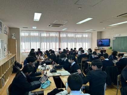 校外学習の説明会がteamsの配信で行われました。机上には一人一台のタブレットで資料を参照しています。とてもスムーズです!