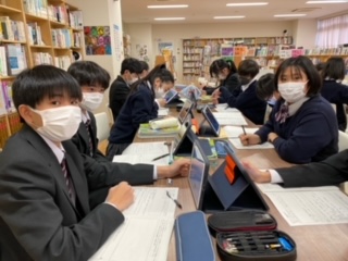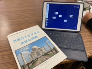 1年生の地理の授業では、図書室を活用し世界のさまざまな地域調査を行なっています。