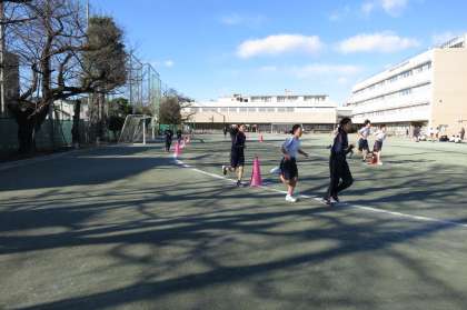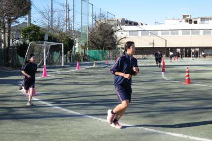 日がのぼると寒さは少しやわらぎますが、それでも校庭は気温が低い。それでも、前回の自分の記録に挑戦しようと頑張っています【菅野】