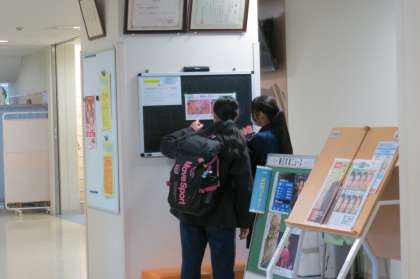今日もNIEコーナー「まちがい探し」にたたずむ生徒を見つけました。ここは昇降口の前にあり、外からの風が吹き込む一番寒い場所なのですが、そんなことをものともせず真剣に‘まちがい’を探す二人です【菅野】