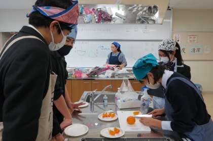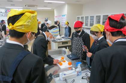 13期生の家庭科では、果物(きよみオレンジ)に包丁を入れる実習をやっていました。皮が薄く身も柔らかい果物に包丁を入れるのは難易度が高いのてですが、みな真剣に取り組んでいます。【菅野】