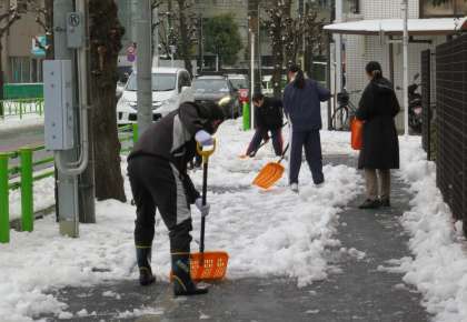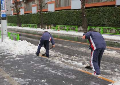 今日のバスケットボール部の朝練習はボールをスコップに持ち替えて雪かきをしてくれています。先生や主事さんと協力しみんなでふなきぼ周辺の雪をよけてくれたおかげで人だけでなく自転車も通りやすくなりました。感謝!【菅野】
