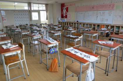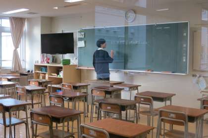 1月から廊下に掲示されていた書き初めが本人に返されています。そして今朝も黒板メッセージに何を書こうか、悩む担任です。