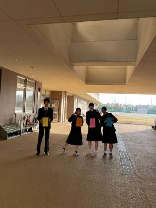 明日まで本校のピロティーで能登半島地震の募金活動を行っています。