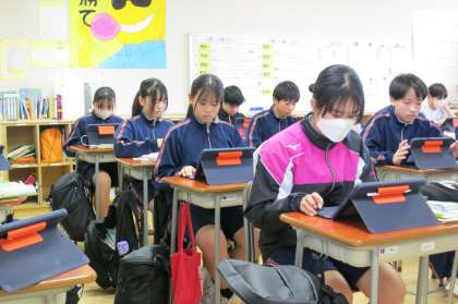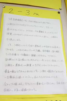 この集中している表情はフナキボ生そのものです。教室の後ろには運動会の時に12期生から送られた手紙が大切に貼ってありました。【菅野】