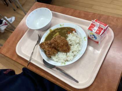 今日は3年生応援メニューのカツカレーでした。都立一般を来週受験する人を優先にカツのおかわりをしました!(私立などですでに進路の決まった人たちの優しさを感じました!)