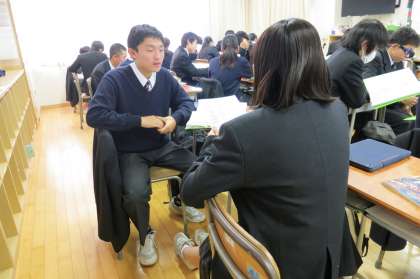 英語はペアワークを盛んに取り入れています。【菅野】