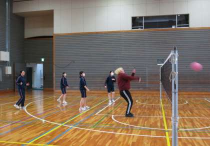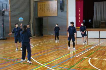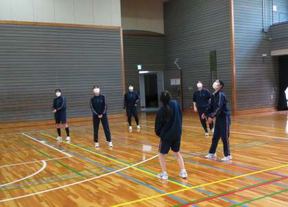 本当はバレーボールの時間ですが、さすがに3年生、都立入試を控えていることもあり、万が一のことも考えソフトバレーボールで代用しています。これなら思いっきりできます【菅野】