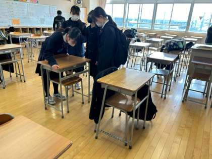 試験後も最後まで机を整頓している1-1の生徒たちです。 石塚