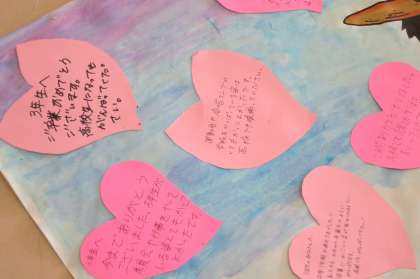 3年生へのメッセージを映そうと思いましたが、またもや「上手すぎる壁」が…。なのでイラストの一部だけ撮影させてもらいました。【菅野】