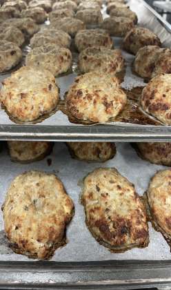 最初にひき肉と塩でよく捏ねて、ほかの材料と混ぜて、成形し、焼きました。こんがりと良い焼き色に仕上がりました。