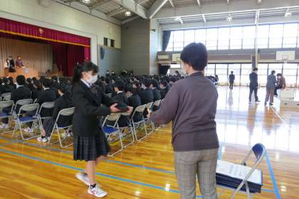 いよいよ来週火曜日が卒業式本番です。今日の練習では式の流れを確認していました【菅野】