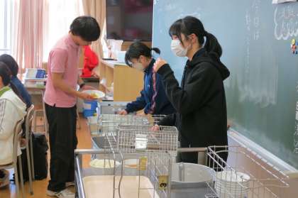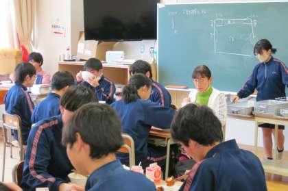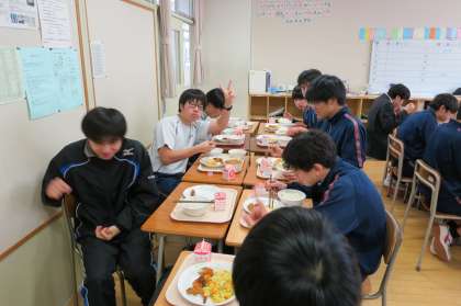 クラスにお世話になった先生をご招待して給食を食べています。私もこのクラスに呼ばれました。「社会は何を教えていたんですか?」「結婚するなら次のどの人がいいですか。1○○…」など質問を受けながら美味しくいただきました【菅野】