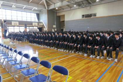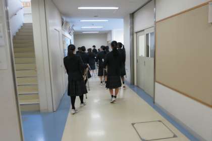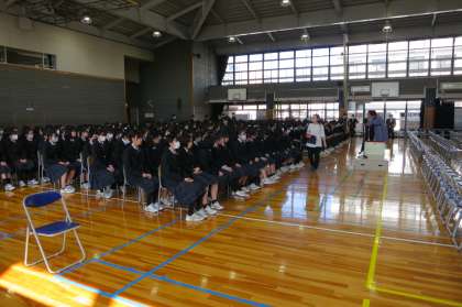 在校生が練習する2時間目からその感動は始まりました。廊下を椅子をもって黙々と移動する在校生。そして3年生の学年主任の言葉に視線が集中します。【菅野】