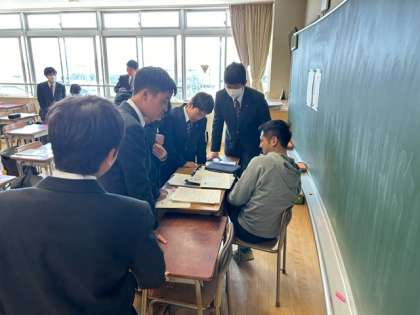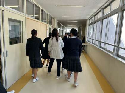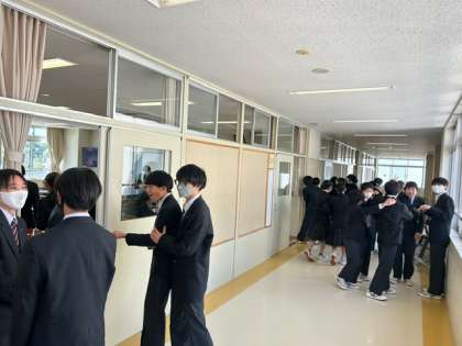 新しい先生、新しい友達と話をする休み時間の2年フロアの様子です。