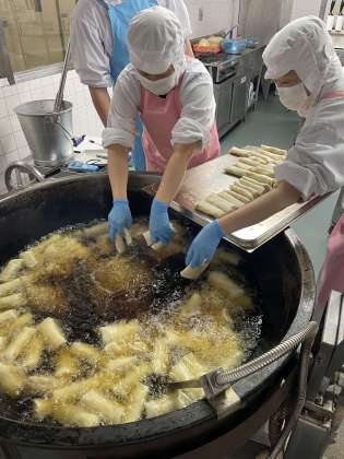 春巻きは、一つずつ心を込めて巻きました。パリッと揚がって、どのクラスもとてもよく食べてくれていました。
