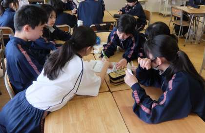 1年生の学活では、班でグループワークを行い親睦を深めています。